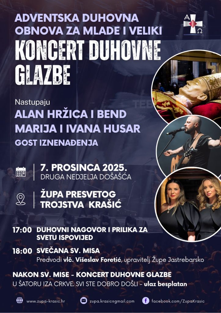 - koncert duhovne glazbe u GRIJANOM šatoru iza crkve.